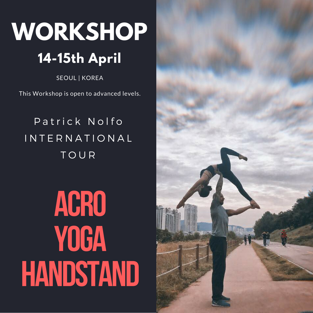 Workshop ACROYOGA & HANDSTAND | 14 to 15th APRIL Écrit par Patrick Nolfo le 23 novembre 2017. Date de début : 14 avril 2018Date de fin : 15 avril 2018Heure : 00:00 - 00:00Lieu: Seoul KOREA Similaire Précédent Suivant